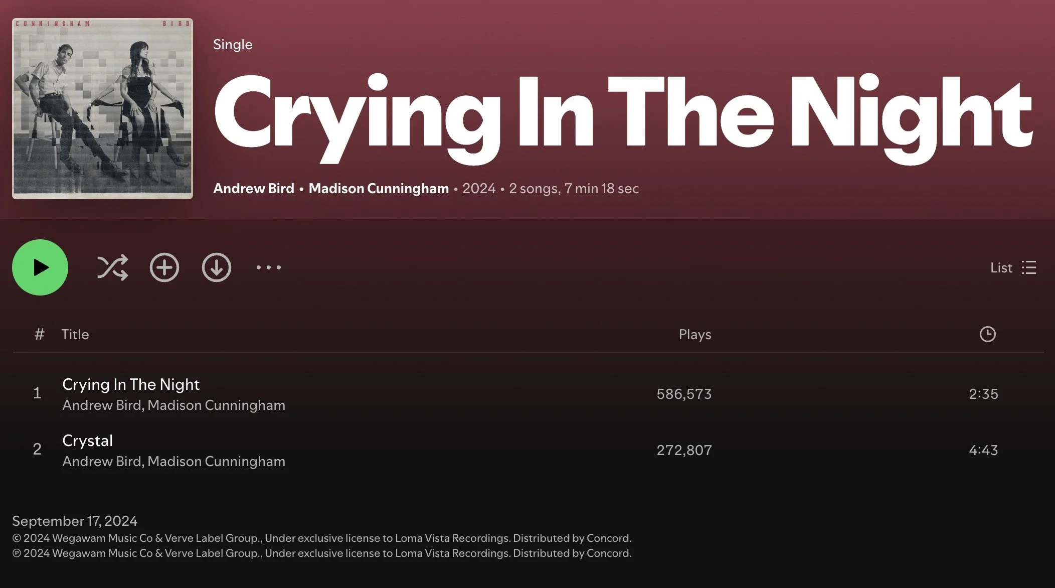In this promotional case study, we’re examining the release of the album Cunningham/Bird by Andrew Bird and Madison Cunningham on Spotify. My complete list of different case studies can be found here.